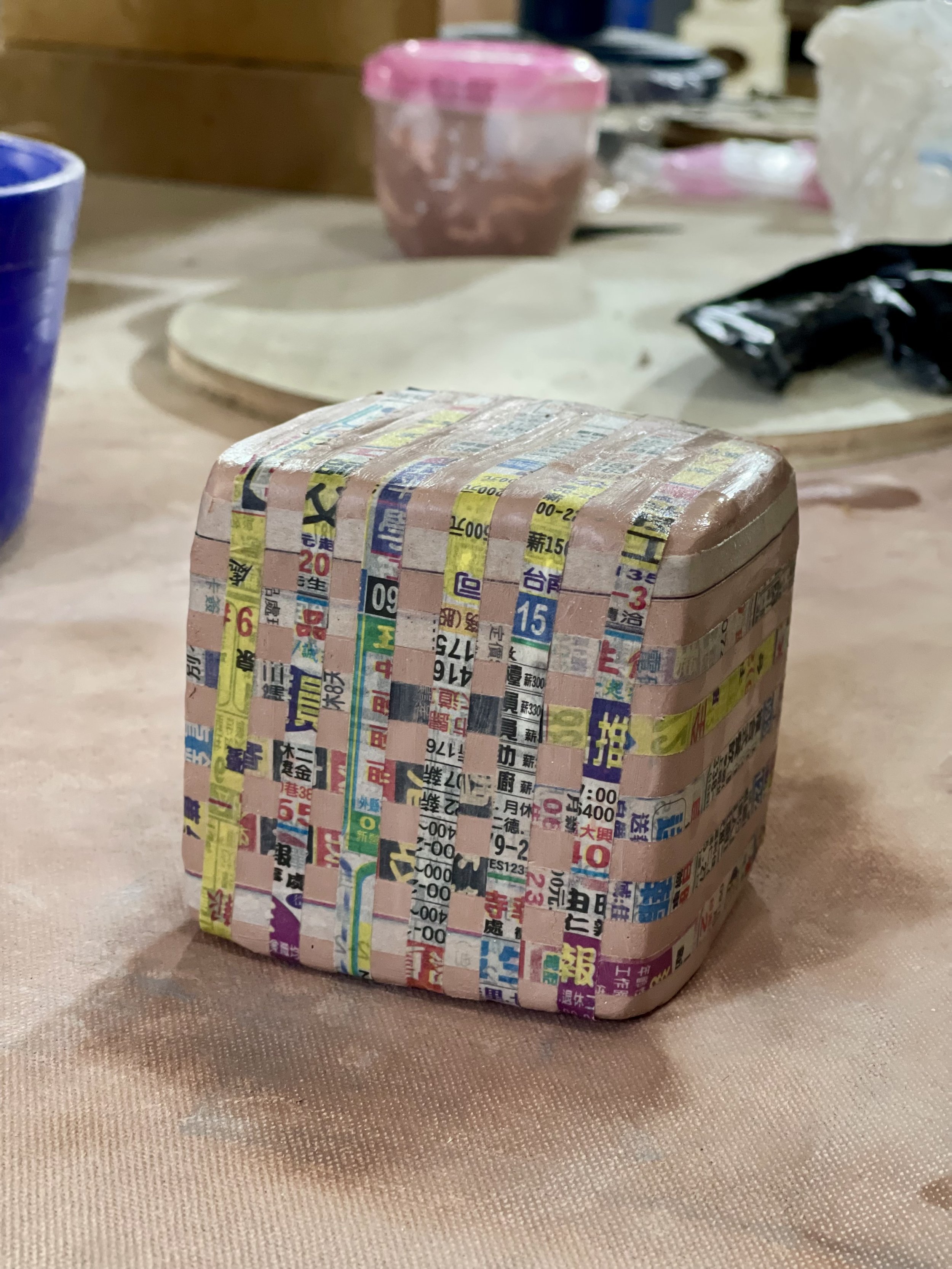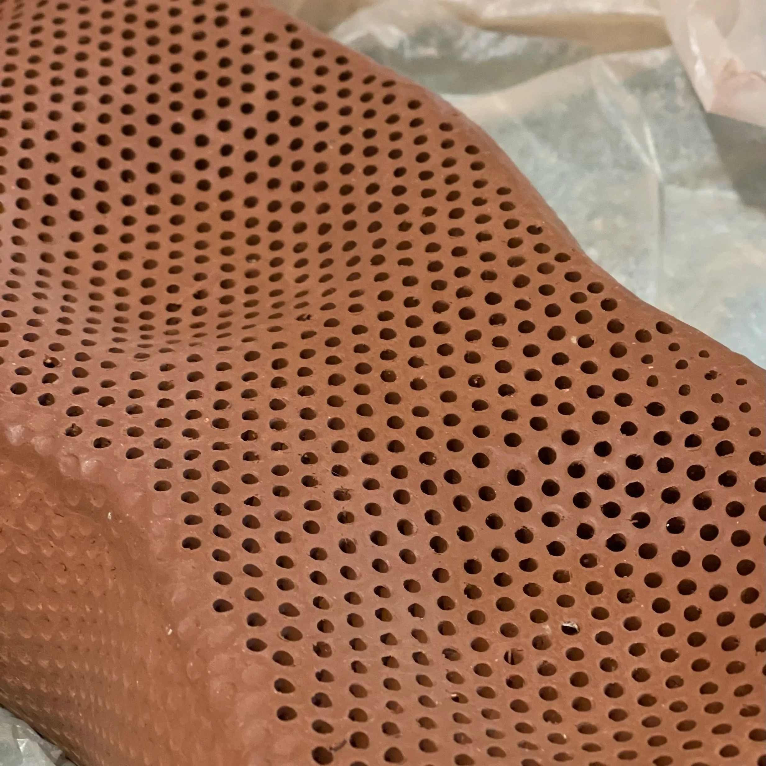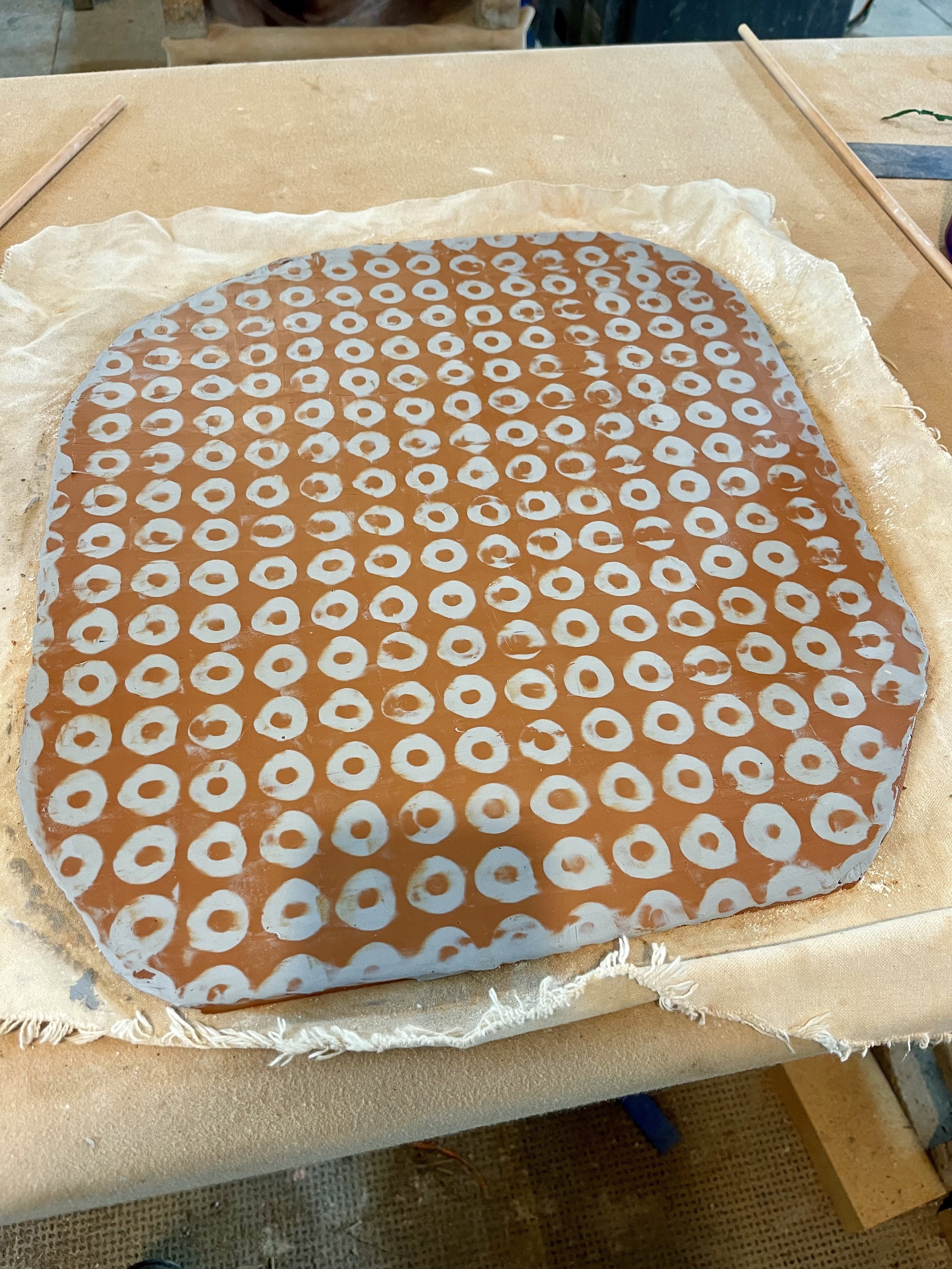 I make elongated trays and cubes, where I’m interested in how pattern, texture, and silhouette shift as shapes are pressed into the clay. These works feel successful when pattern and silhouette align, and when the form reflects the gesture that created it.